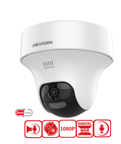 CÁMARA PT FIJA 350 GRADOS 2MP CON AUDIO BIDIRECCIONAL, 2.8MM, IR 25M, LUZ 20M, MICR Y ALTAVOZ INT